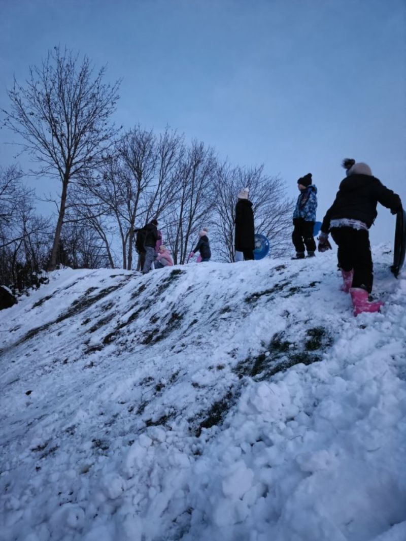 Zimowa aura sprzyjała także aktywności na świeżym powietrzu – ogromną radość sprawiło dzieciom zjeżdżanie z górki, które dostarczyło mnóstwo śmiechu i pozytywnej energii.