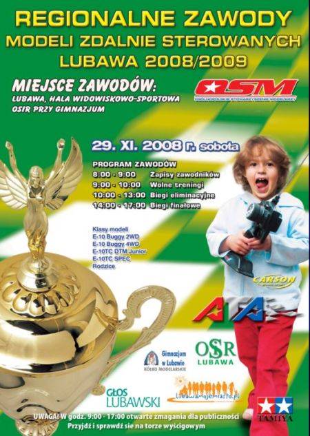 Regionalne Zawody Modeli Zdalnie Sterowanych Opublikowano: 25go Listopada, 2008 29.11.2008 w sali OSIRu przy ul.Św.Barbary odbędą się Regionalne Zawody Modeli Zdalnie Sterowanych